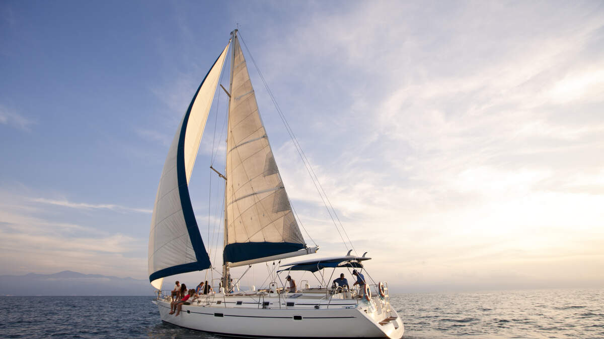 Sunset on the open ocean w/beautiful sailboat